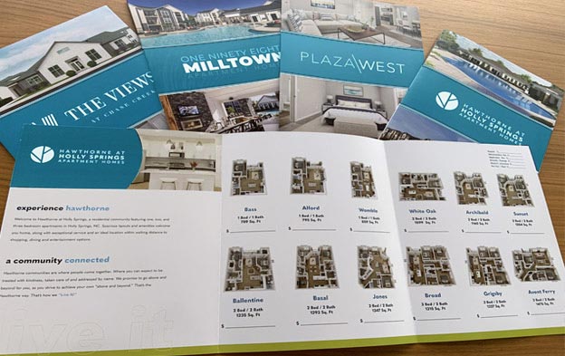 Your 8, 12 , or 16 page full color brochure layout has already been designed and approved by Hawthorne Residential Partners, all you have to do is customize it with your community's information. You will receive a PDF proof of your order before production begins. Your custom brochures will be in your hands about 9 days after approval.